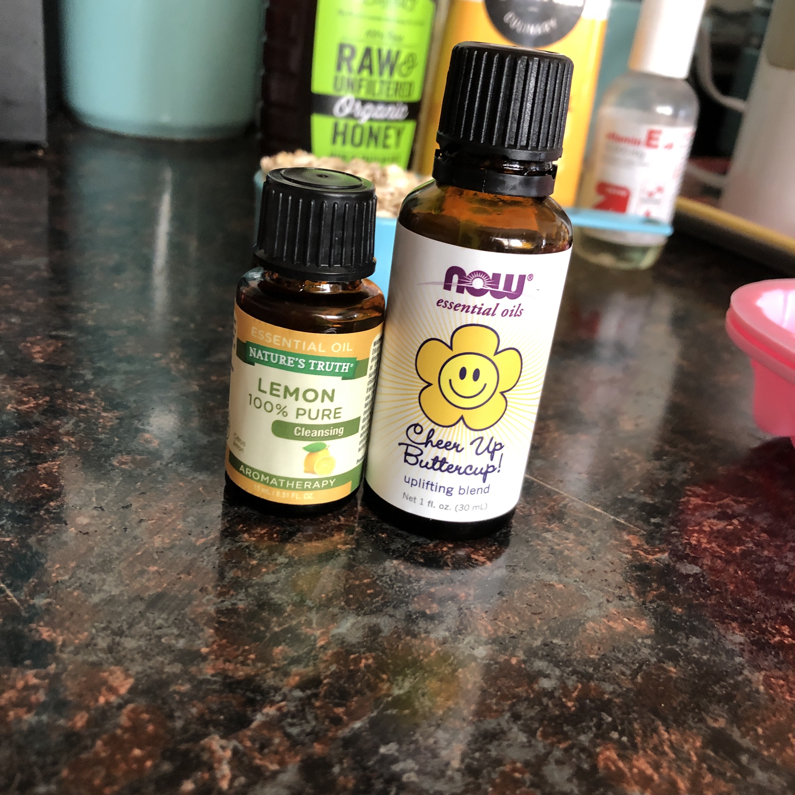 And for scent I added lemon oil and an oil called cheer up buttercup 😂 pic below. I added 3-4 drops of each!