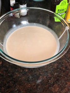 In the picture above are some of the main ingredients I used! I chose to use sunflower oil and vitamin E oil due to their many benefits (I’m hoping they will work for my kids skin) which I will post later in this post! You can play around with whatever oil you feel will moisturize your skin. The oatmeal melt and pour soap base that you see in the glass bowl I found on amazon! I will link it later! That is 2 pounds, but I only used 1 pound. I was able to make 11 bars of soap!